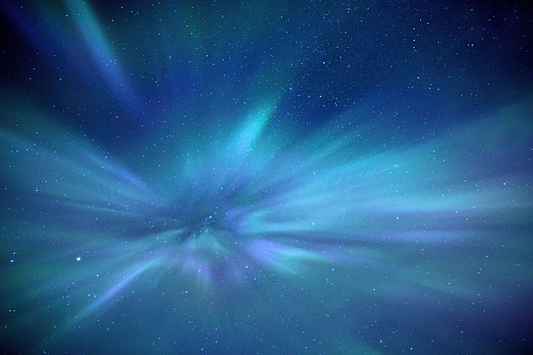 Northern lights following the impact of two solar flares. When the aurora bursts directly overhead like this, it's known as a "corona."